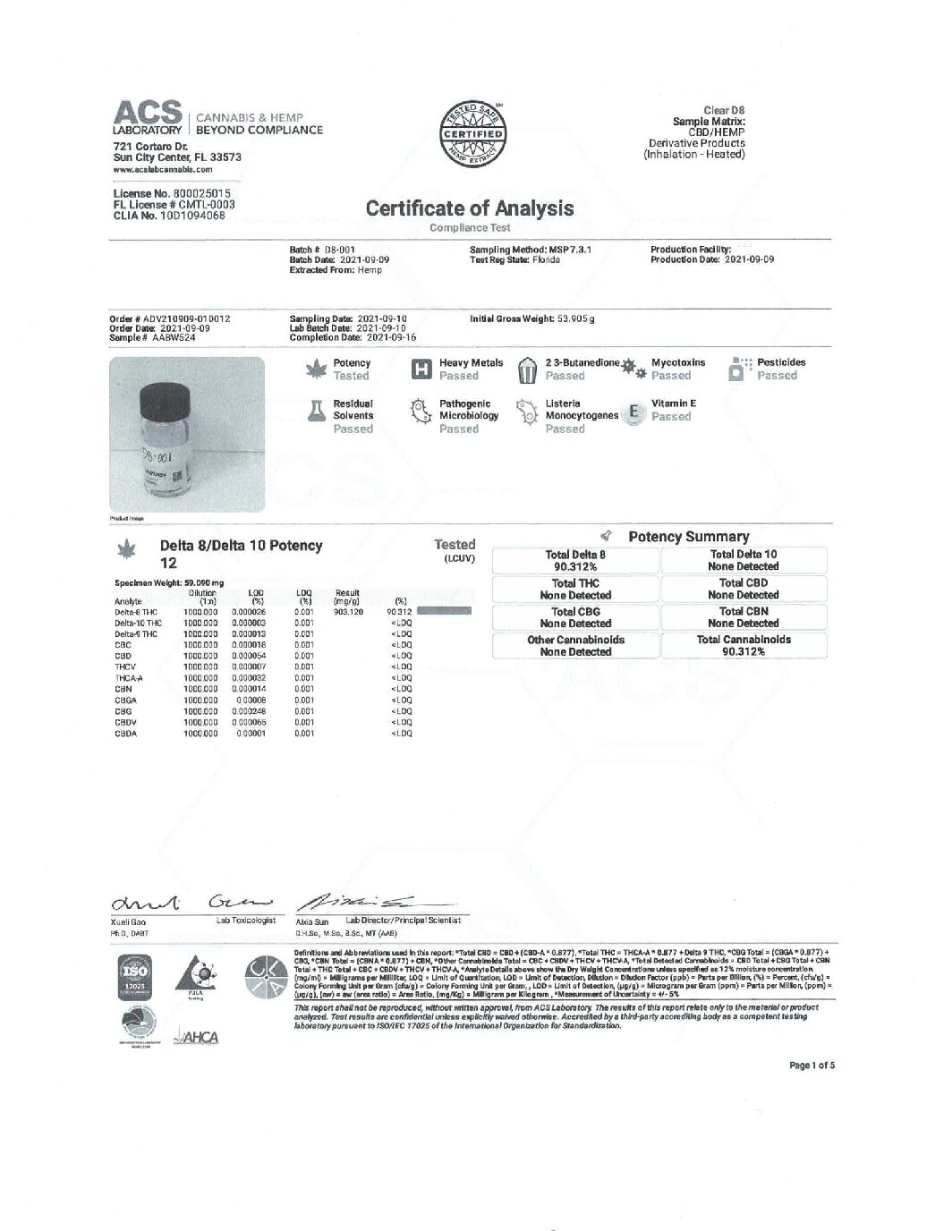 NOTE: There are small amounts of variation in our batches. To account for this, our 1ml packaging will say “approximately 900mg Delta 8” to be conservative. However, our products may test higher.